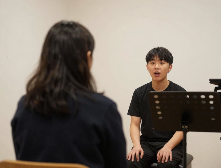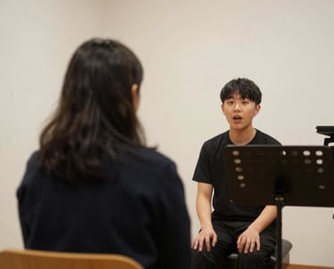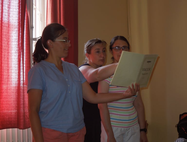 En cours particuliers, ses élèves sont des enfants à partir de 8 ans, des jeunes préparant une entrée en conservatoire, et des adultes pour qui la voix est un outil d’expression, de plaisir ou professionnel.